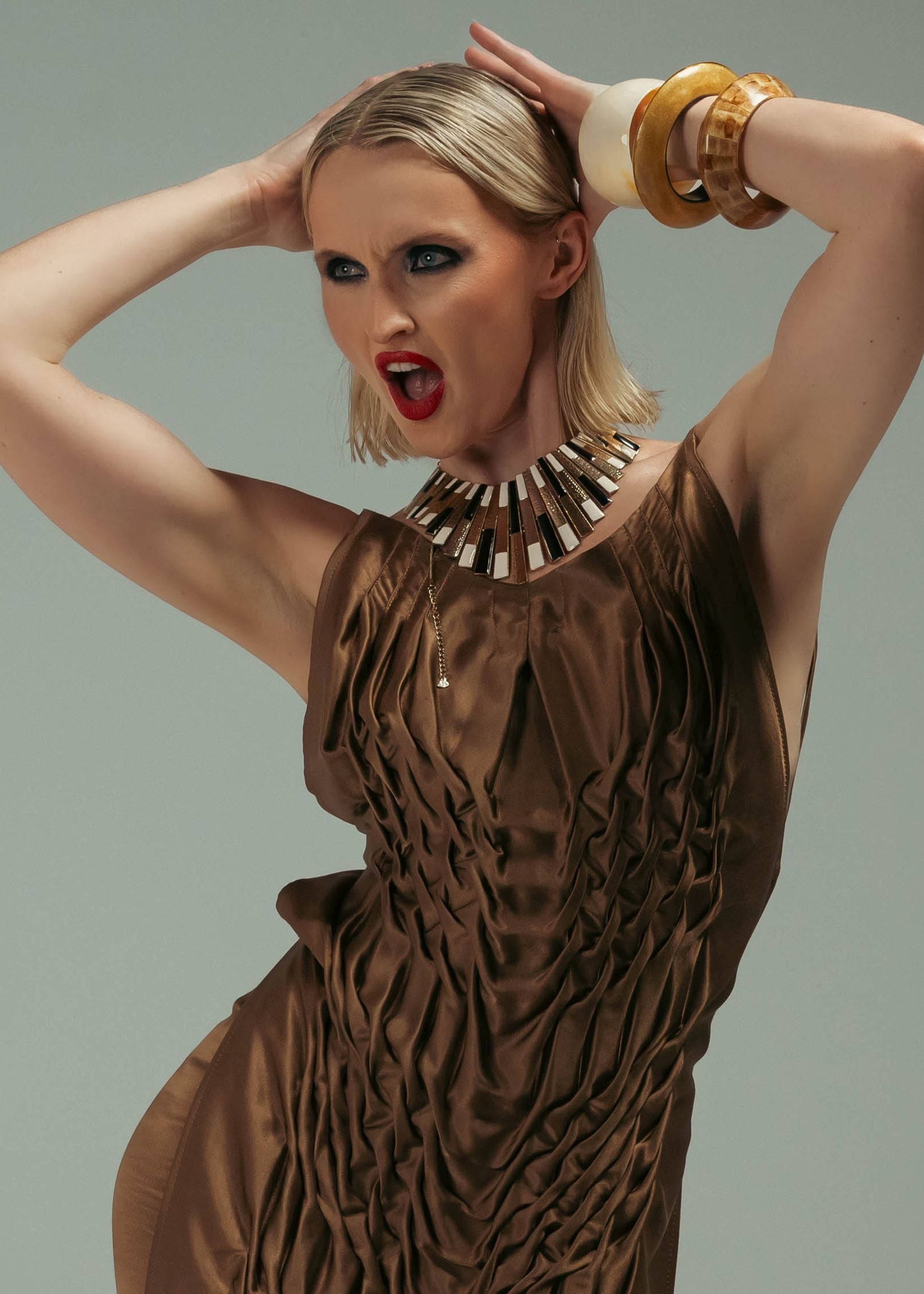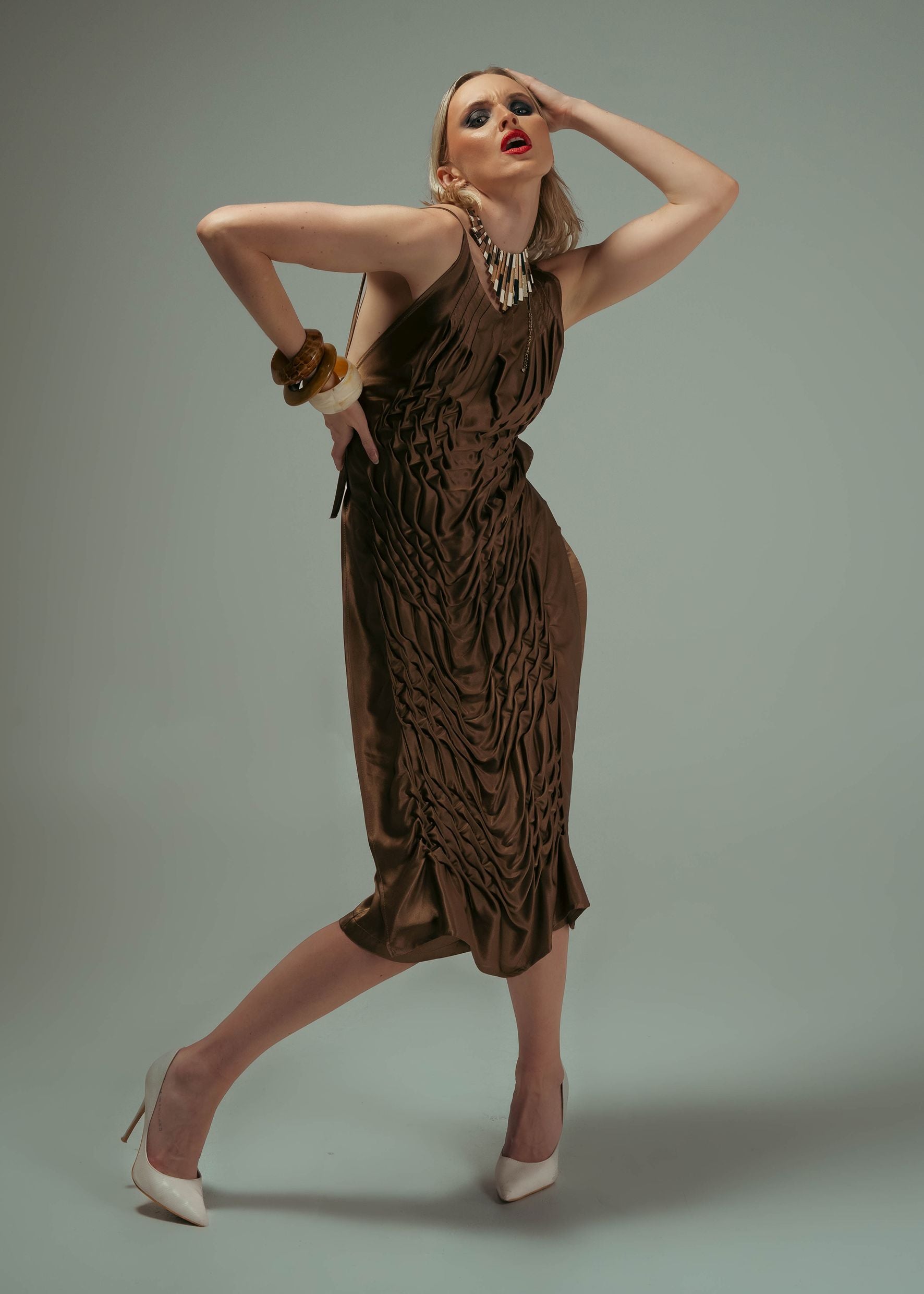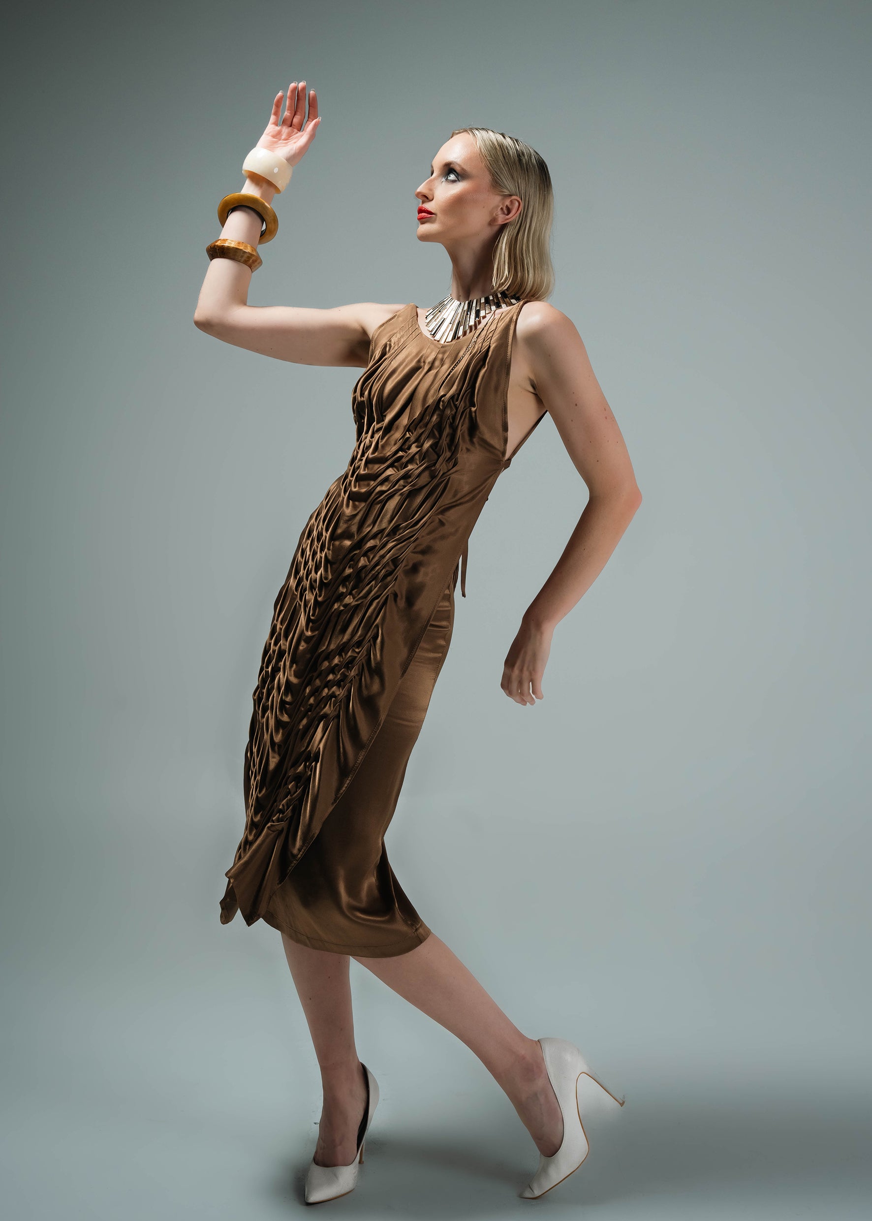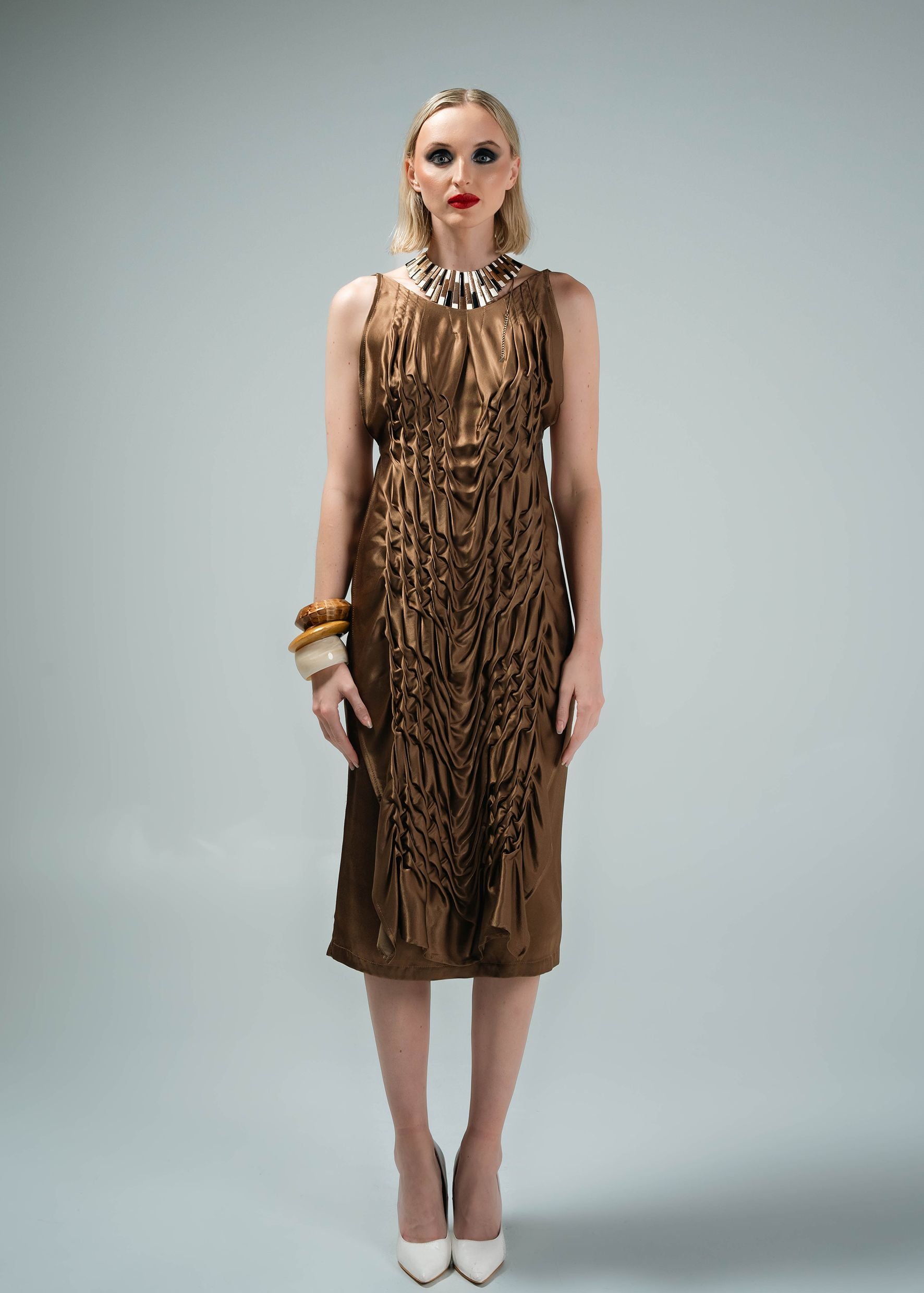 Made in golden sating silk.